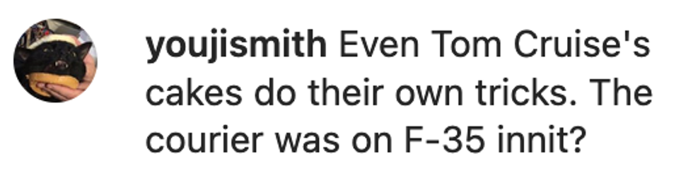 "It's a Tom Cruise cake," Bay informed viewers.