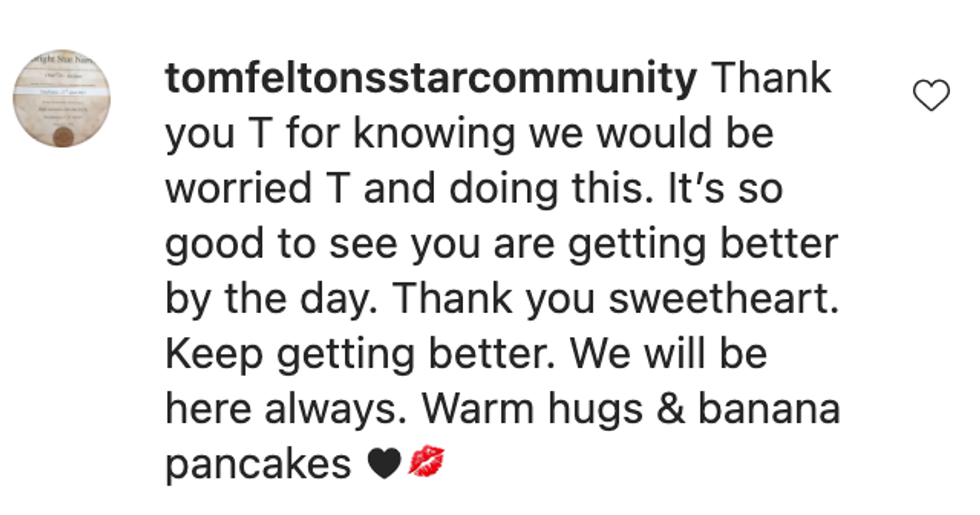 But a bigger sigh of relief came when Felton himself took to Instagram, posting a video captioned "feeling better by the day xx".