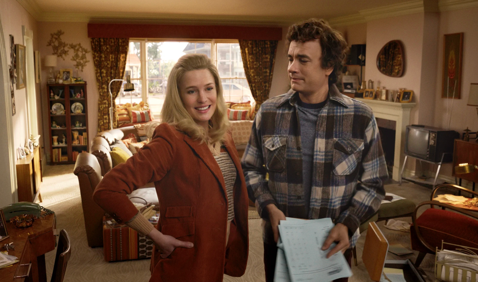 In the upcoming drama, with a screenplay co-written by Zemeckis and Eric Roth, Hanks plays baby boomer Richard, and Wright is his late teenage girlfriend and future wife, Margaret.