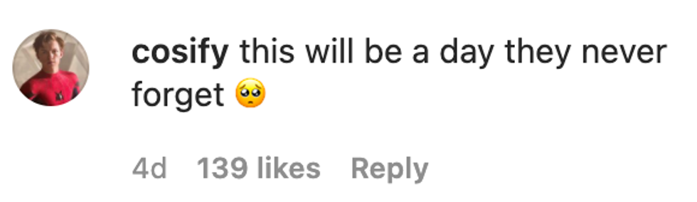 “The opposite was true! Tom, Zendaya…and the entire cast/crew made our kids feel like stars. They don’t just act the part of friendly neighborhood heroes – that’s what they truly are.”