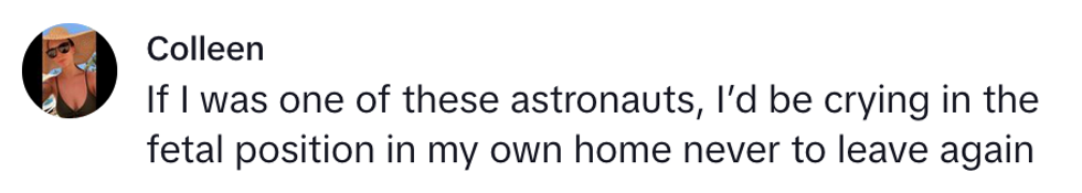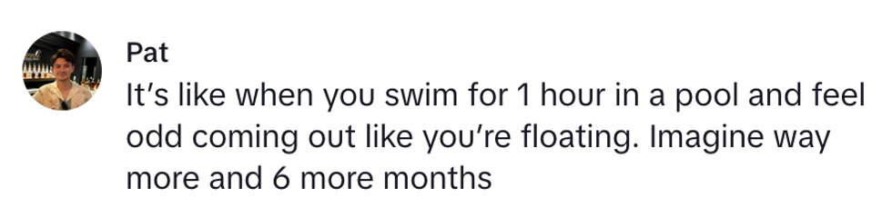 "Oh, well, yeah. You feel all of the muscles dragging on your bones until your body gets used to gravity again."