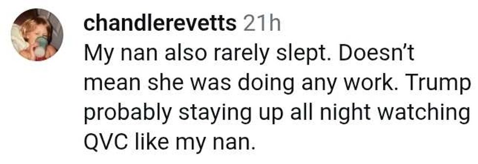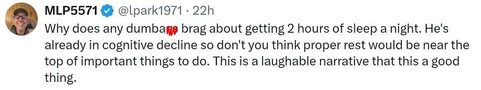 "We have another one we can do, all it takes is a little work, but President Trump sleeps about two hours a day."