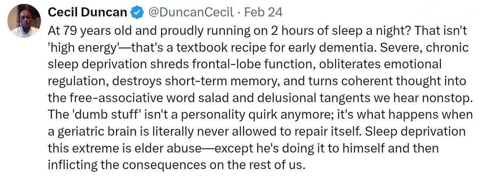 Multiple MAGA members of Congress have bragged about Trump’s stamina and how little he sleeps.