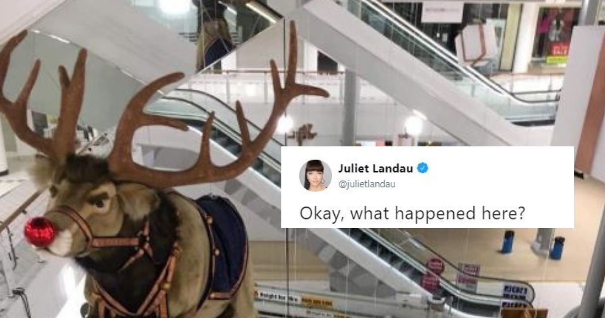It would seem Rudolph has had enough and he isn't taking it anymore. Worse yet, he seems to have gone all Rambo on his fellow reindeer co-workers. actress/Director Juliet Landau noticed a scene right out of a horror film when she came across some Christmas carnage at what appears to be a shopping mall.