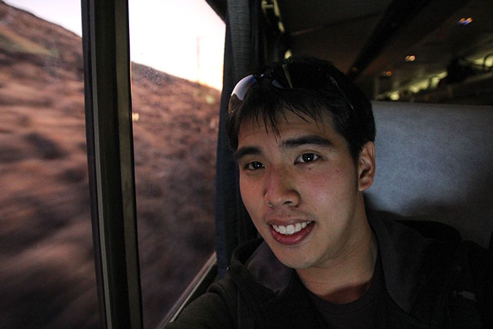 Each night, Low slept in his reclining train seat, something he describes as surprisingly comfortable.