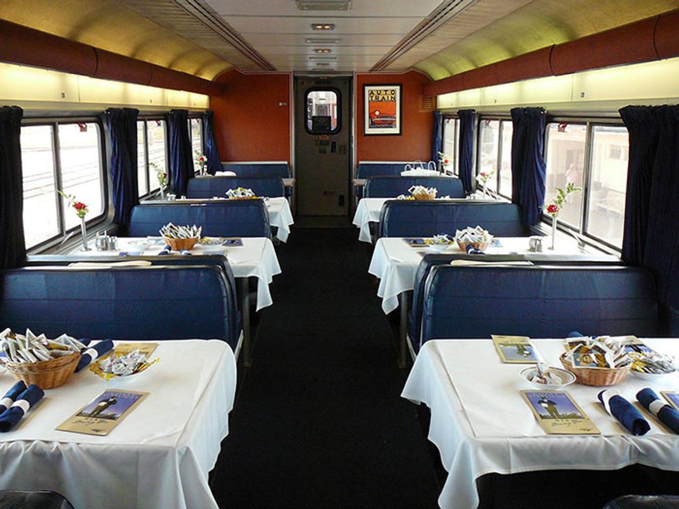 Dinner is served every night in the dining car. Seating is limited, so passengers are often grouped up with strangers.