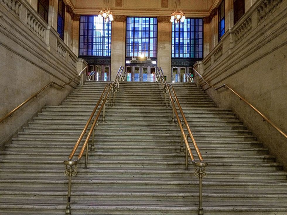Derek disembarked for the second time in Chicago, where he saw the famous stairs from The Untouchables...
