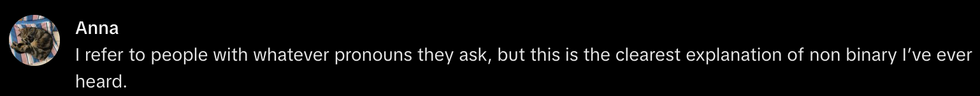 An example of this is a recent TikTok clip that went viral, in which trans TikToker Lilly Contino explained to a curious passerby what the word "nonbinary" means.