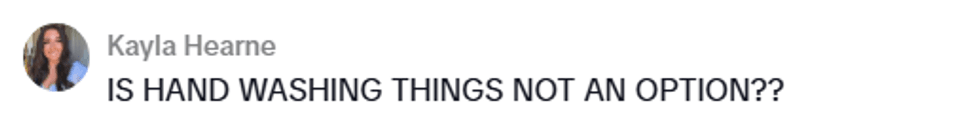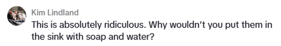 Fellow TikTokers were alarmed, pointing out a much better hack called "soap and water in the bathroom sink."