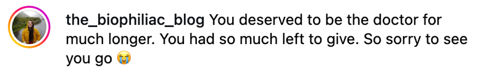 Last conversation I remember having with her, she was talking about how she was curled up in bed on a Saturday with all of her dogs.