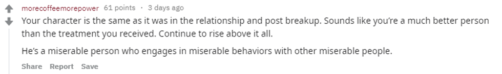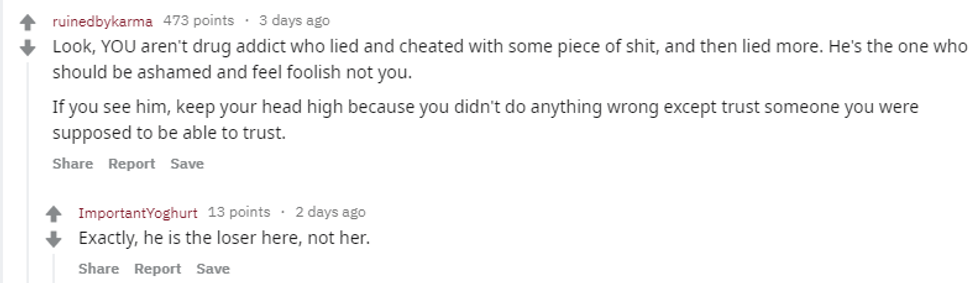 She reveals her ex started using with his new lady, while keeping her, the original poster, in the dark.