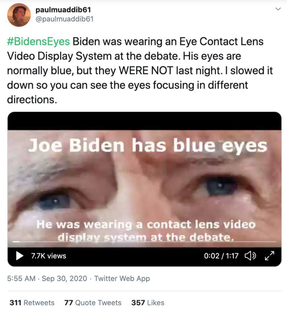 Even stranger, after the debate had finished, they began to claim that Joe Biden was wearing a high-tech contact lens that let him somehow cheat through the event.