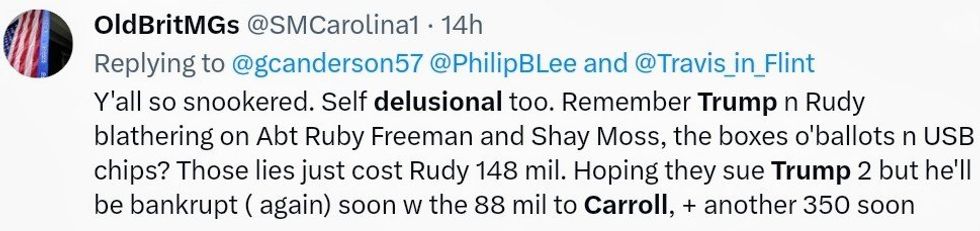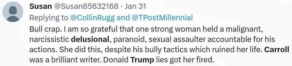 @RpsAgainstTrump Reality check\n\n\u201cMr Trump in fact did 'rape' Ms. Carroll as that term commonly is used and understood in contexts outside of the New York Penal Law."\n\n$5m+$83.3m damages awarded by a second jury for him repeatedly lying about it and defaming his victim \ud83d\udc4d\n\nhttps://t.co/QP0LZKitlj— (@)