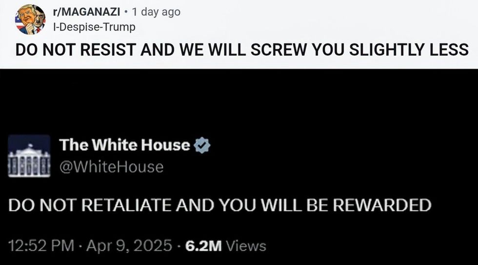 The official White House X account drew backlash Wednesday after posting an open threat against any country that responds in kind to Trump’s on-again off-again tariffs.