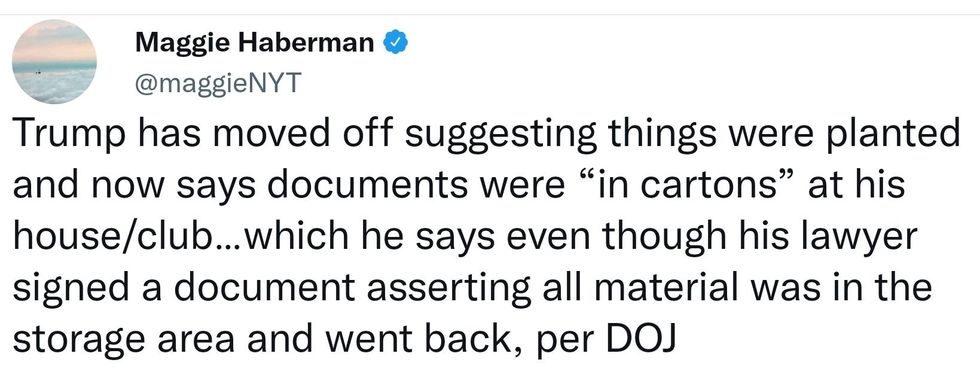 According to his latest post, Trump had documents clearly marked classified and top secret, but they were all in cartons.