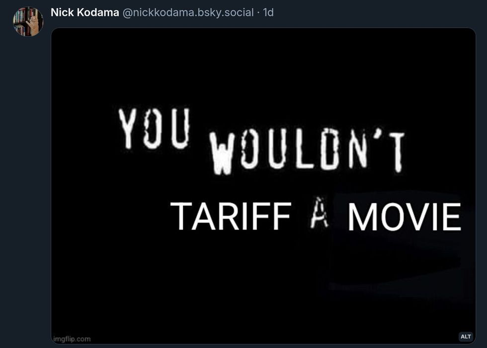 How exactly do you tariff a movie? Even if you could, people could just VPN to get lower prices or you know... pirate it.