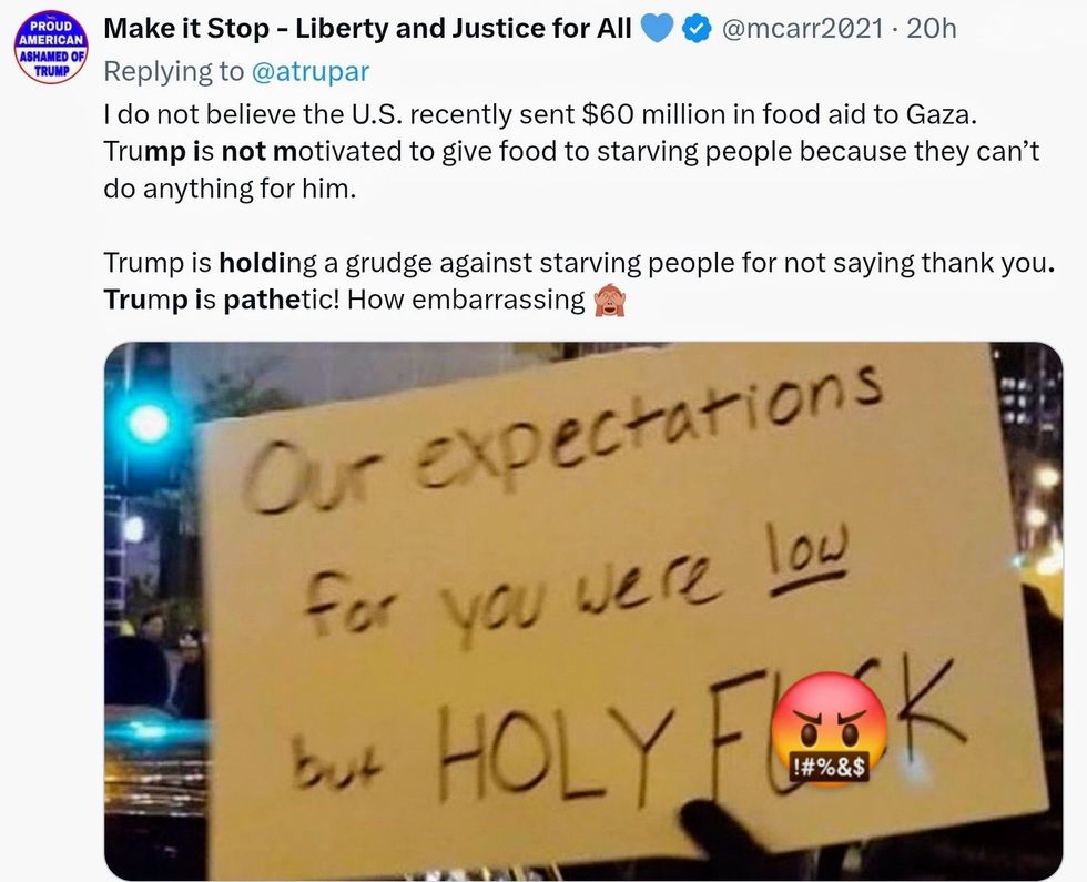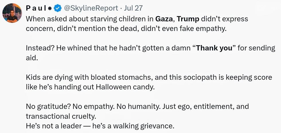 Trump demanded a thank you note for giving Gaza food aid, then started ranting about “nuclear dust.” He looks weak, sick, and lost.