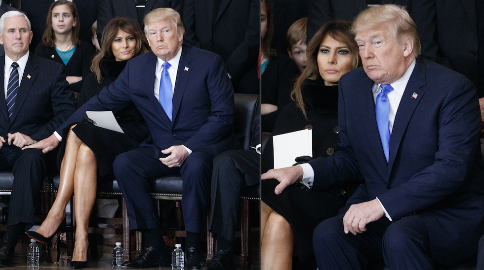 Trump was still handsy with the First Lady, but we can't tell who cringed the most between her and the vice president.