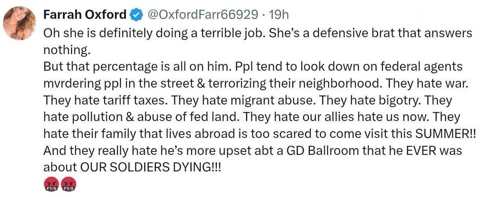 "A person who gets 97% of bad… maybe Karoline's doing a poor job, I don't know."