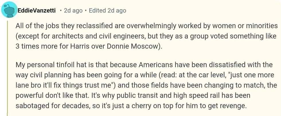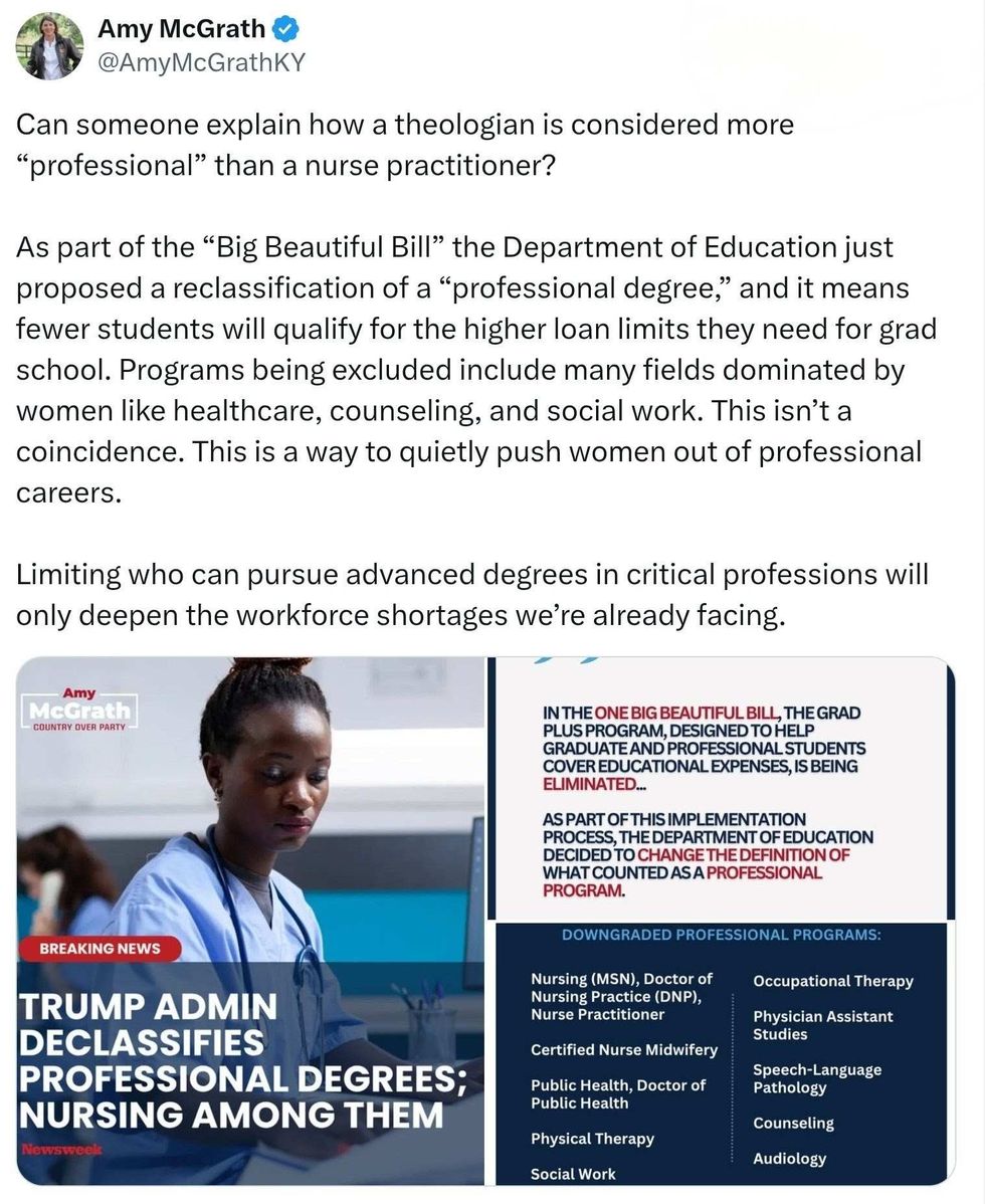 In addition to who wanted the changes and why, they shared the other professions downgraded by the Republican's One Big Beautiful Bill Act that fulfilled many of Project 2025's Christian nationalist and White supremacist goals.