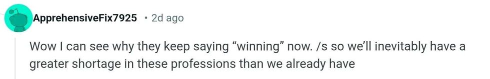Many noted the change is likely to make already critical nurse and teacher shortages even worse. Again, it's a matter of design to sabotage both public healthcare and education, making both luxury items that are reserved for the wealthy.