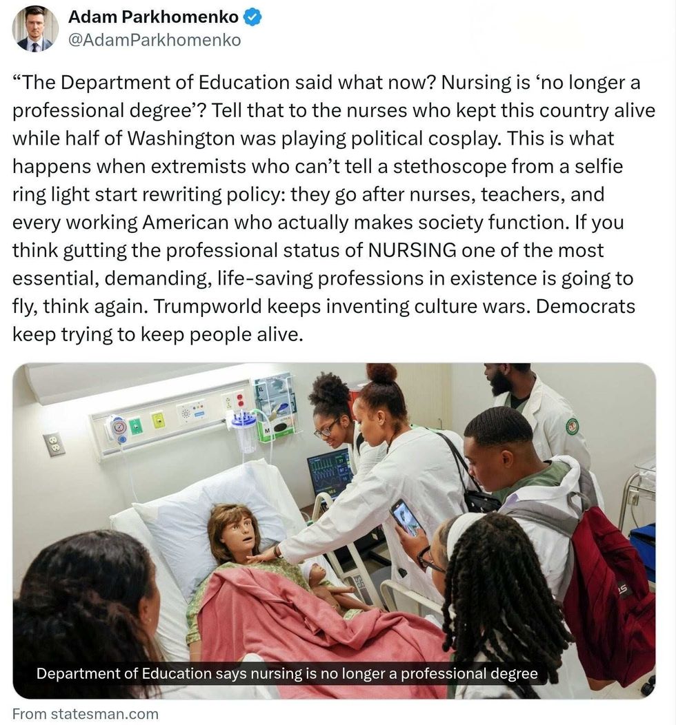 The United States Department of Education, under the guidance of MAGA Republican President Donald Trump and his Secretary of Education, former World Wrestling Entertainment executive Linda McMahon, has officially excluded nursing in the revamped definition of “professional degree” programs.