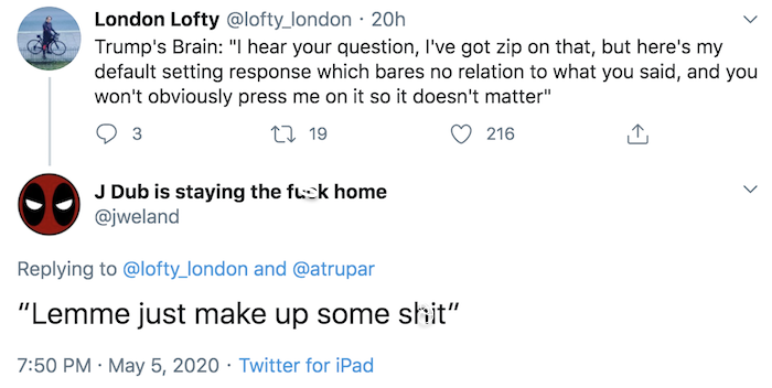 Muir also asked the President specifics about his pandemic response timeline, his push to reopen, the lives lost due to poor performance at the onset of the global pandemic and those likely to be lost if the easing of restrictions is also handled poorly—something Trump rarely faces with Fox News hosts.