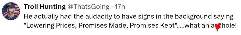 According to a new POLITICO poll, half of all Americans are struggling to afford food—not pencils and dolls—and aren't willing to fall for cute catchphrases any longer, which doesn't bode well for Republicans who stand by their man going into the 2026 midterm elections.