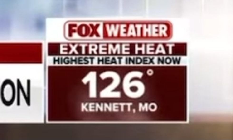 Throughout the segment, extreme heat readings—some above 120° F (49° C)—from across the U.S. were being posted.