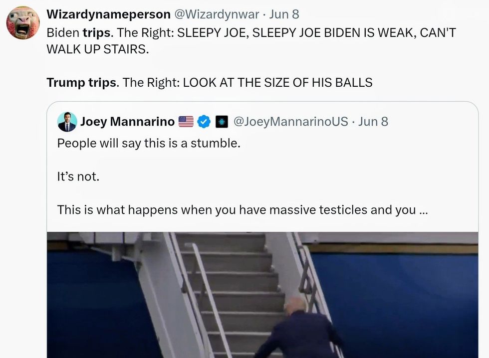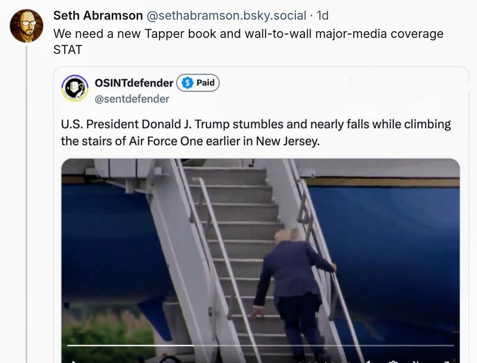 While everyone buys Trump's trip up the stairs given his difficulty walking and standing...