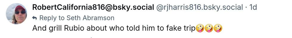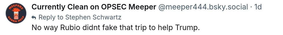 Moments later, Rubio took the same stairs and performed an identical stumble near the top of the stairs, within earshot of the plane's doorway.