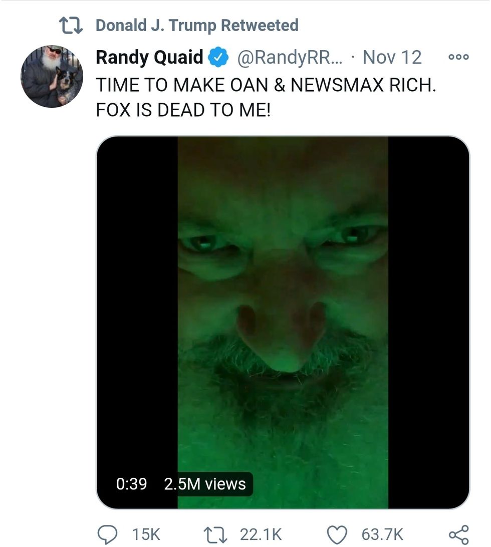 Wow when you are retweeting Randy Quaid you are scraping the bottom of the celebrity gene pool but I guess nobody with actual star power likes you so....🤷🏼♀️🤷🏼♀️