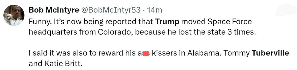 There is only one reason Space Command is being moved from Colorado to Alabama: Donald Trump is a petty tyrant who doesn't care about Americans who didn't vote for him.