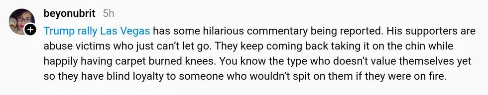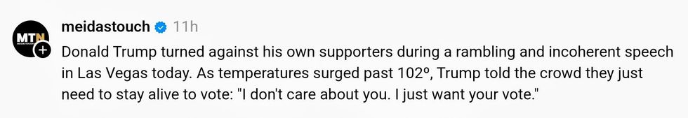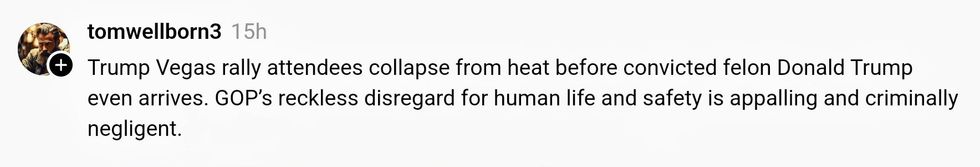 On Sunday, former Republican President Donald Trump told his MAGA minions not to leave early from his outdoor Las Vegas rally where temperatures reached 102° F (39° C).