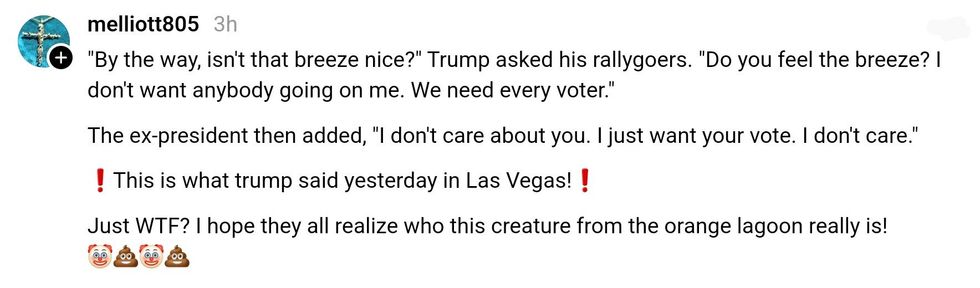Trump: Do you feel the breeze? I don't want anybody going on me. We need every voter. I don't care about you. I just want your vote. I don't care. pic.twitter.com/IirvQs123c