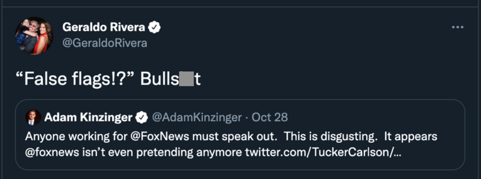 Rivera shared a post from anti-Trump Republican Congressman Adam Kinzinger of Illinois, who slammed Carlson and Fox for promoting the lunacy.