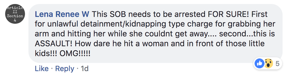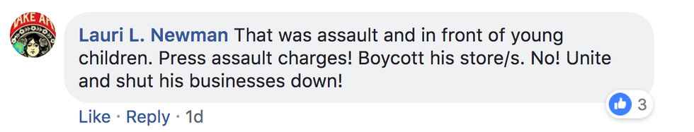 The altercation continued out onto the sidewalk, in front of the store, and was all caught on video by a bystander who later posted it on Facebook.