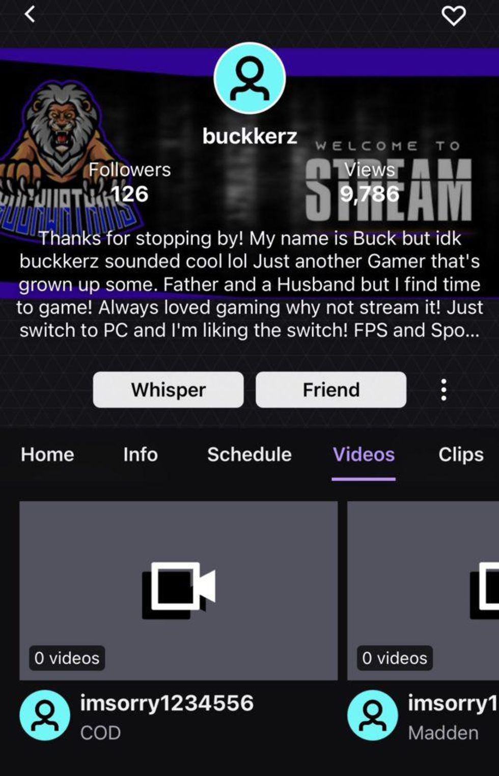 The gamer was identified as "buckkerz" on Twitch. His profile described him as a "Father and a Husband," but it's unknown if the child in the video is his.