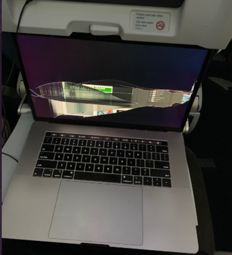 Then, out of nowhere, the passenger in front of Cassidy popped their seat back for a little shuteye, immediately destroying the MacBook.