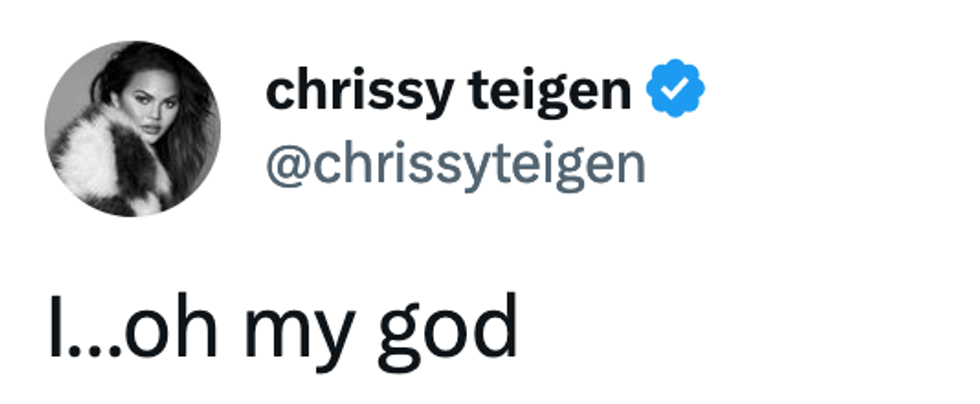 Teigen was at a loss for words when her resurfaced tweet was verbalized before Congress.