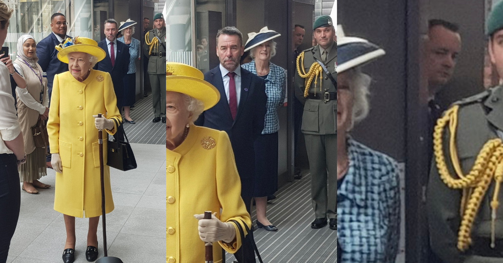 The Queen was making a surprise visit to Paddington Station in honor of a train line being named in her honor, when royal correspondent Valentine Low of The Times of London snapped a pic and tweeted about the event.