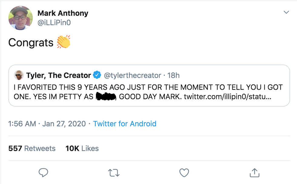 As for Tyler's hater, @iLLiPin0 a.k.a Mark has offered an olive branch.