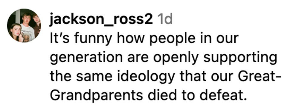 “He fought for his country, he wanted to purify it by kicking the greedy jews out that were destroying his country that were turning them all into gays."