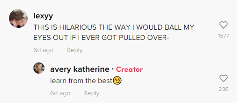 Though Wood was overwhelmed by the experience, crying first because of being pulled over, crying for a second time because of having to have her identification checked, and crying for a third time while filming the video, the internet sure got a kick out of it.