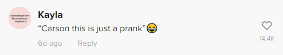 "Carson, this is just a prank. I'm sorry. I did not mean to say that."