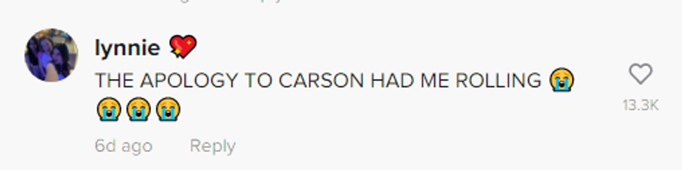 Others could not stop laughing about Wood's apology to her boyfriend, Carson.