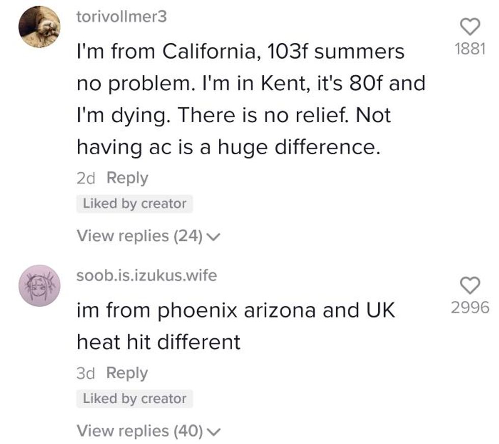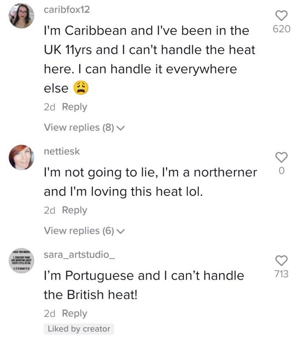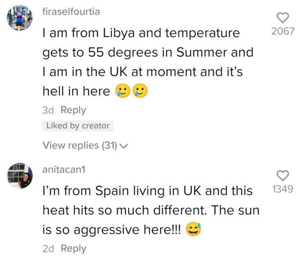 A number of comments drove these points home, pointing out how hot it really feels in the UK right now.