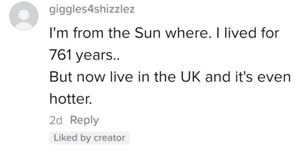 The original video has been deleted, but saw a TikToker wondering how hot the heatwave in the UK is. They look up a temperature conversion of the 31°C to Fahrenheit and finds it's "only" 88°F.