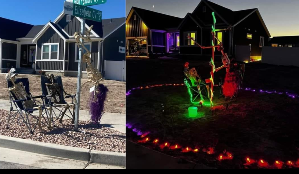 The town of Grantsville issued a warning on their public Facebook page, in a post that has since been deleted, saying that the people who were responsible for the display needed to take it down by that evening, or the city would come and take it down for them—and confiscate the skeletons.