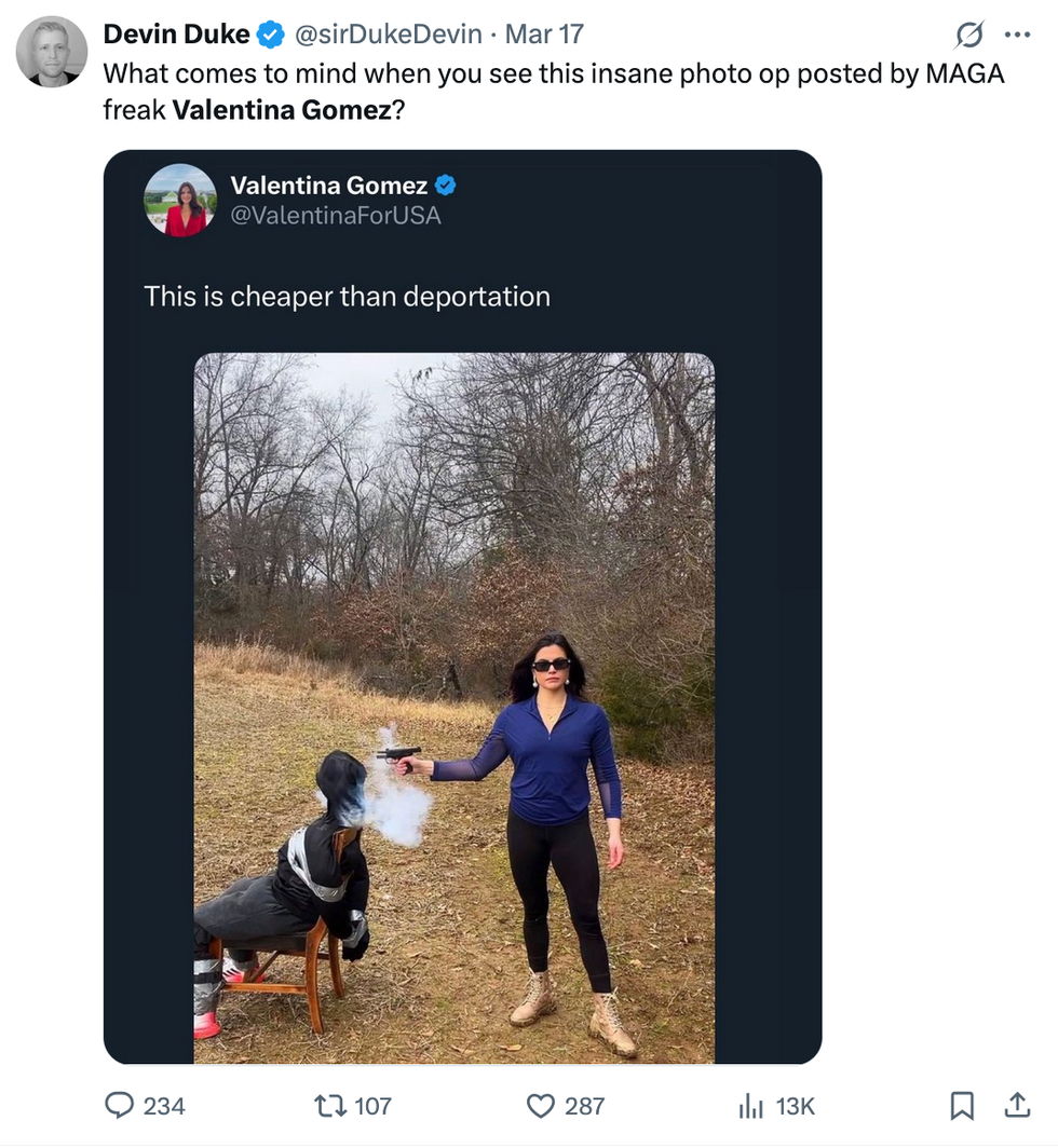 Far-right MAGA activist Valentina Gomez drew social media outrage for posting a screenshot from a video violently depicting the execution of a migrant criminal.